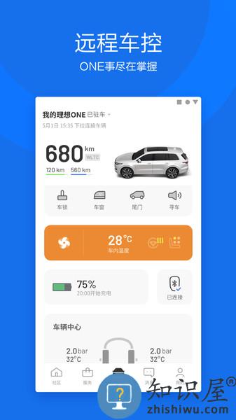 理想one汽车app是理想汽车官方专门为理想one车主打造的车机互联的智能app,它可以帮助您快速的了解自己的理想one还有多少续航,车内的实时温度是多少,还可以一键定位到附近的营业网点,专门打造的理想商城,还有智能人工客服为您服务!