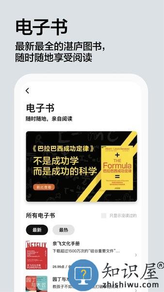1.纸书、电子书:涵盖社科、人文、经济等多领域,阅读《黑石的选择》《稀缺》《生命3.0》《驱动力》等名家作品