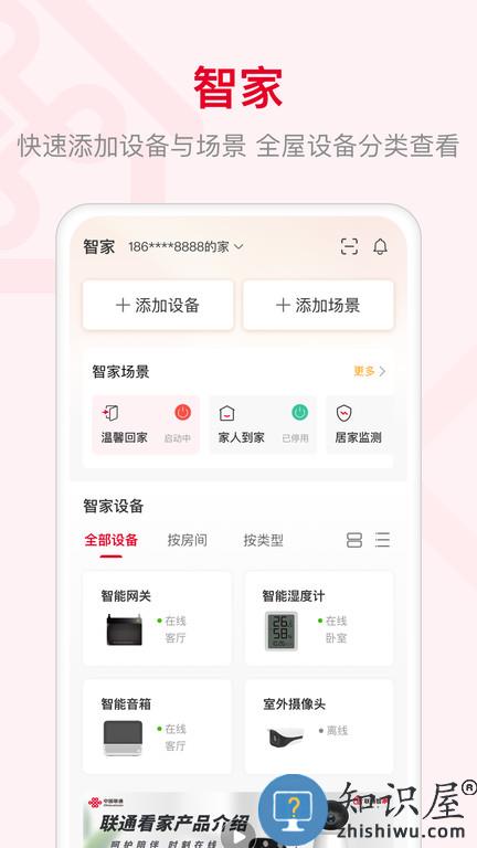 联通智家app官方版是智慧家居软件,以家庭用户为中心,用户可以在线连接智能设备,实现远程的操控,里面有着超多的存储空间,支持家庭共享,大家能够实时的查看到监控,还能回放历史记录,有需要的用户快来下载使用吧。