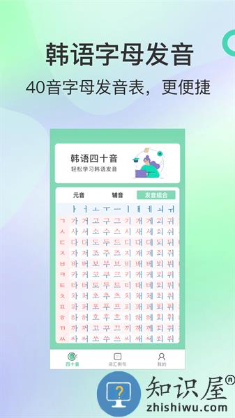 1、韩语四十音,以及发音的技巧,轻松学习。