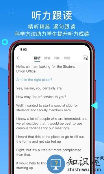 精听细练,中英翻译,倍数播放,逐句精听跟读。对话类讲座类题型,听力内容从预备段到冲刺段 循序渐进,科学方法帮助学生学习。