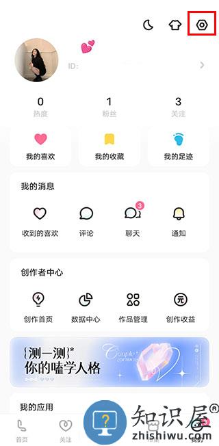 1、首先进入我的页面,点击设置。
