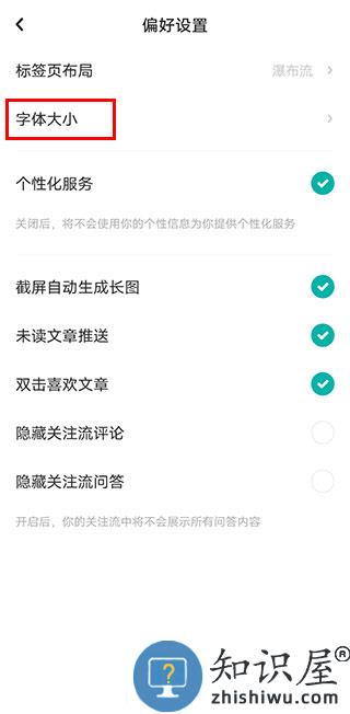 3、点击字体大小。