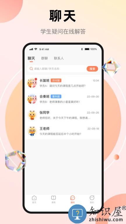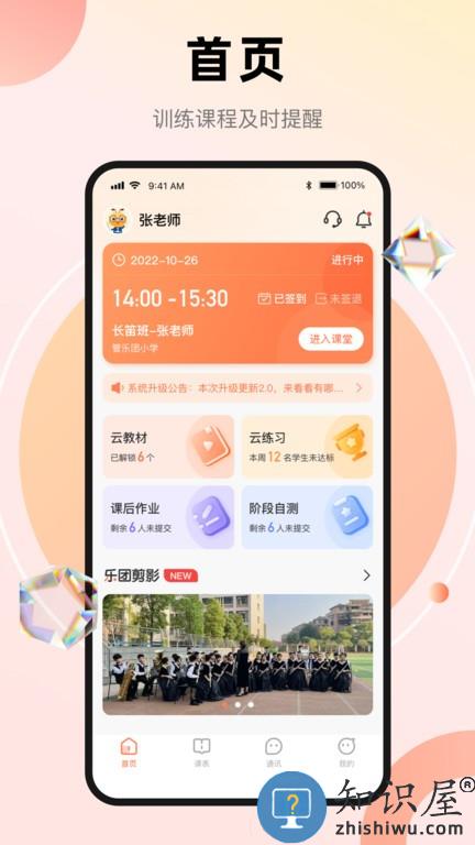 管乐团伴学端适合伴学教师用户来使用,可以在手机上查看学生的练习情况,乐团班级的训练进度一目了然,支持按照日历查看课表安排,能够进入课堂进行上课直播。