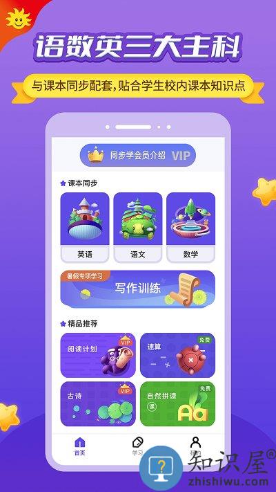 同步学app是一款能够帮助小学生们更好的学习课堂知识的手机辅导软件,语数外多门学科同步学习,功能十分强大,哪里不会点哪里,听说读写全方位帮孩子辅导,成绩进步更快!快来点击下载体验一下吧!