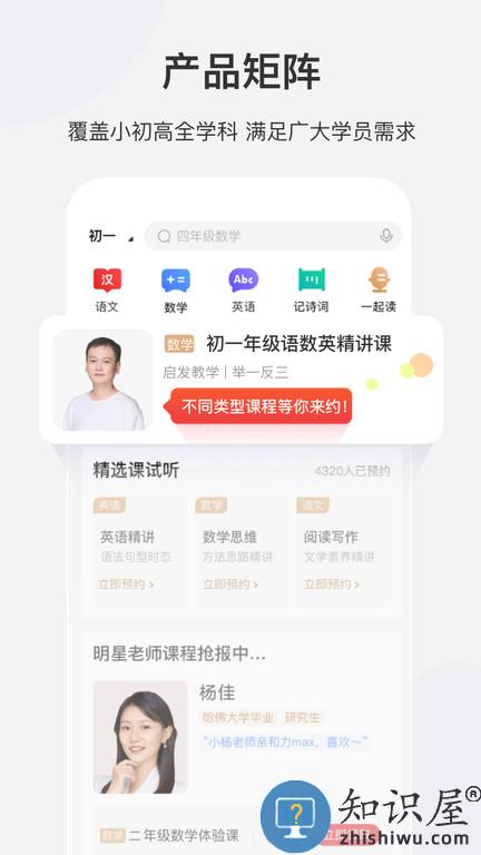 研究学习的科学,让孩子科学地学习。通过每周的同步课帮助孩子巩固一周所学,发挥教育“乘法效应”,帮助孩子学得更加轻松高效。