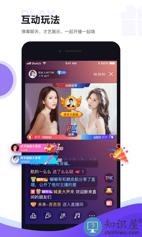 虎牙平台提供多种互动玩法,连麦、PK、开黑、陪玩,主播粉丝一起玩,直播不寂寞。