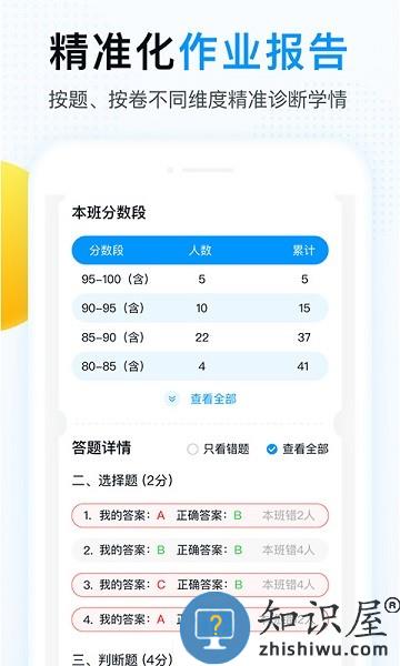 帮助学校建设智能题库和智能作业编写系统,在不改变老师批改习惯下,学生在校用答题器、在家用手机提交选择题答案或勾选错题,师生依据学情报告精准教与学,智能管理错题,老师一键发布个性化、分层作业,学生重做错题,加练相似题,靶向纠错。