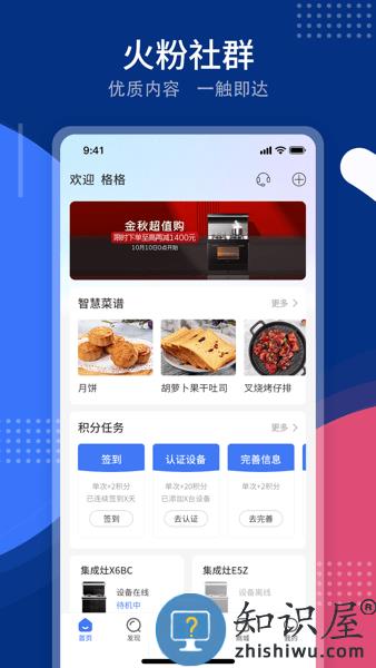 火粉俱乐部app内置智慧厨房,可以通过app来控制火星人集成灶,更有专门设定的美食菜谱专区,所有的菜谱都是免费提供,让您使用起来更加的方便!