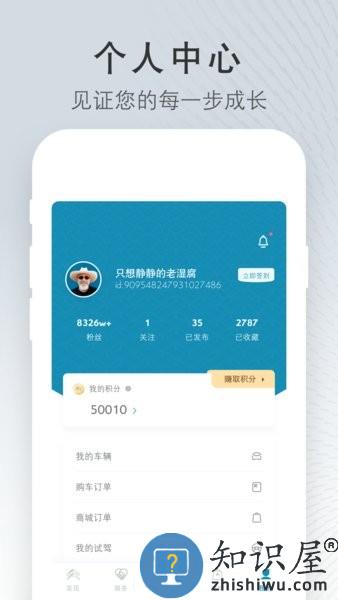 查看我的车辆订单和积分订单,发布记录,消息与收藏内容,个人信息设置修改,联系在线客服。