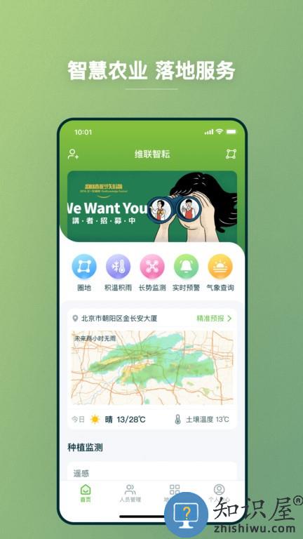 “维联智耘”APP结合国内外多颗卫星的高分辨率实时遥感影像,采用高光谱影像处理技术、微波遥感技术、作物智能识别技术来做监测,通过大数据高精密算法分析、和十几年的多家科研院所精心创建的作物生长模型来做预测,从而实现地块圈定管理、作物长势监测、气象预测、病虫灾害预警、土壤墒情肥力监测5大服务功能。