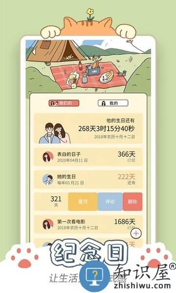 纪念日--小可爱们可记录下特别的日子,同时可以开启倒计时功能,提示下一次纪念日的到来还有多少天。