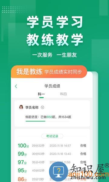 考试:学习进度教练随时掌握,教练可根据进度安排考试。
