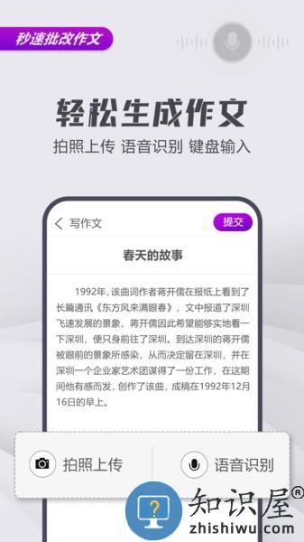3.作文生成便捷:支持上传照片、语音识别、键盘输入等多种方式,使作文生成更加便捷。