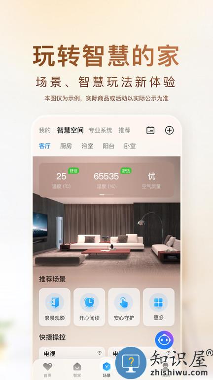 ·根据设备及所选空间推荐场景,支持一键快速启动