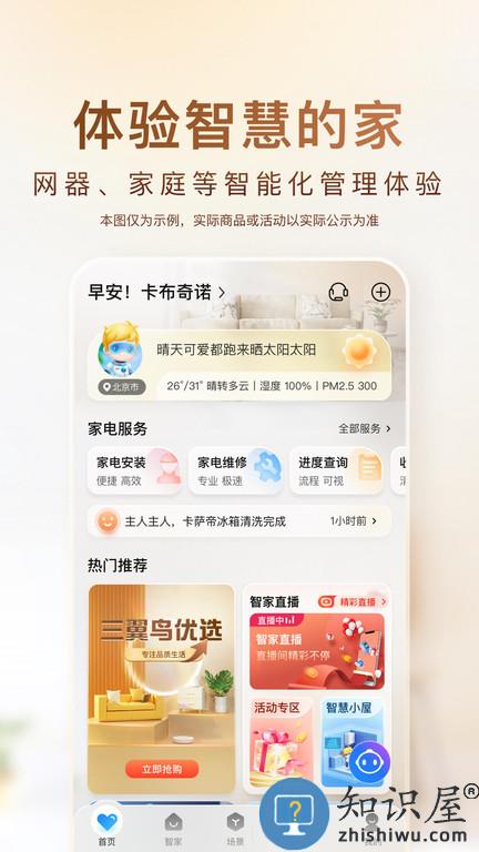 它是专业的智慧家庭应用,它可以让您随时、随地、随心的掌控家中智能设备,还能实现从家电购买到家电安装的全流程服务,让您轻松享受智慧生活带来的乐趣。