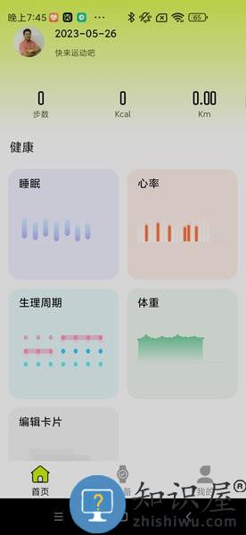 显示当天运动数据,包括步数、跑步距离、消耗卡路里、运动时长等。点击查看锻炼记录, 实时展示各项手环传输过来的健康数据。查看历史数据,见证您的健康与变化。