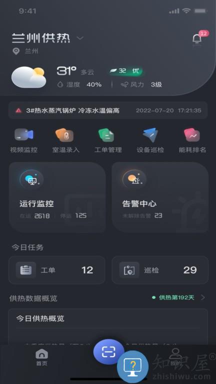 指沃供热软件作为供热设备管理app,能够查看设备的时候监控视频,可以在线录入室温数据,支持对设备进行巡检记录,可以便捷的查看和管理工单,还有非常详细的供热数据以及能耗排名情况。
