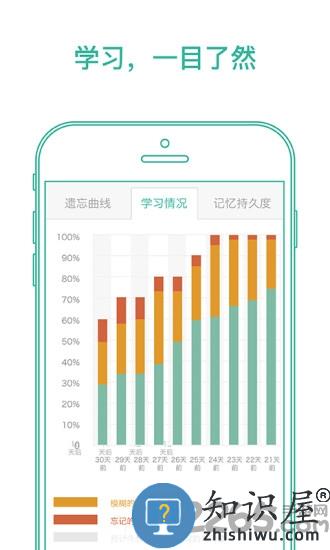 * 记忆持久度:你可以清楚地看到已学单词的熟知度情况。