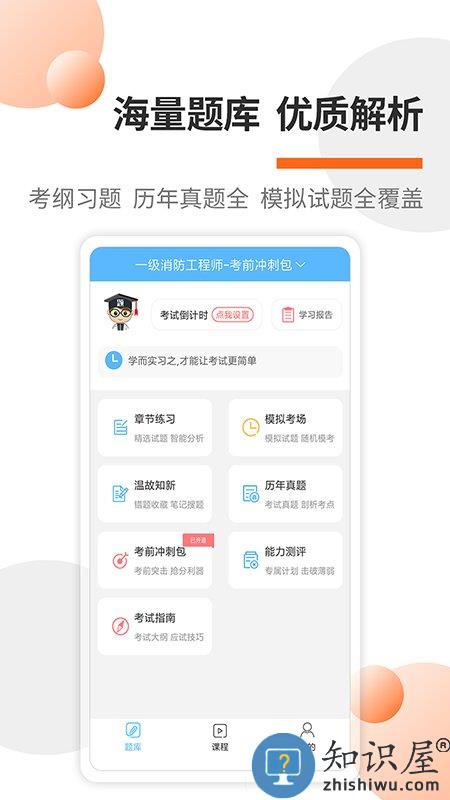 你为考试而来,我为考试而生!推出消防工程考试海量题库,精品课程为广大考生加分助考!全新解析,历年真题全部都有,考纲习题、模拟试题全覆盖,还有视频课件、经典案例、考前冲刺、以及考试的高频考点。