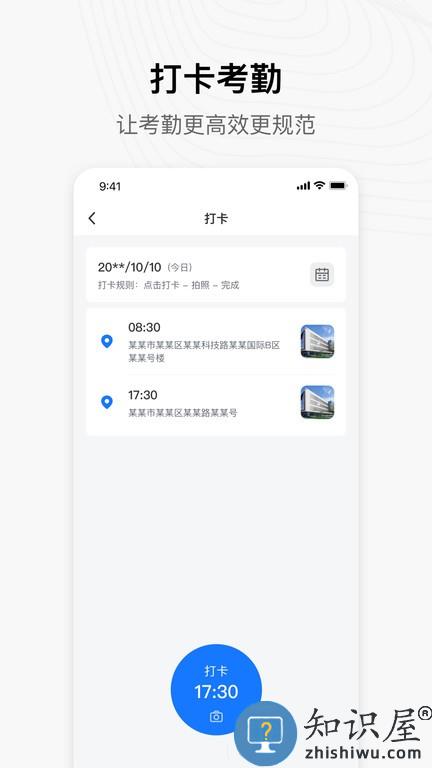 软件具有考勤打卡功能,用户可直接在软件上进行上下班打卡。