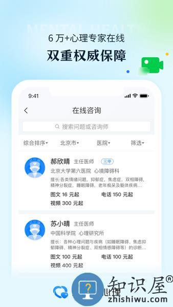 2.心理咨询:从文字咨询到电话、视频咨询,提供贴心、及时、有效的咨询服务,解决用户在生活中的困扰。