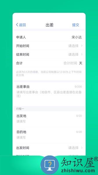 在线打卡和请假申请:在线进行打卡,记录工作时间和考勤情况。如果需要请假或出差,可以在软件上提交请假申请,包括选择出发地、目的地和时间等信息。