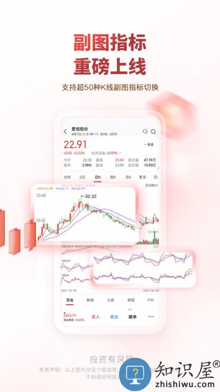 3、个股支持超50种K线副图指标的切换和最多4图同时对比