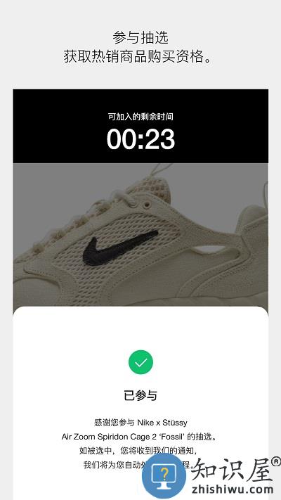 中签:中签成功后即可在10分钟后为鞋子进行付款,若未按时付款,将丧失这个购买资格