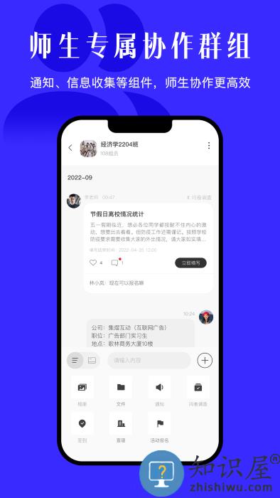 3.新增协作沟通群组功能:为了满足校内师生之前沟通协作的需求,全新上架和辅导猫联合共创的行政班功能:根据班级节点无感知生成,班主任、辅导员自动成为管理员,全部成员实名制。行政班内包括班级通知一键发布,调查问卷快搭以及辅导猫等应用。目标让班级事务的处理更加快捷,师生的沟通更加简单,重要的通知不再遗漏。
