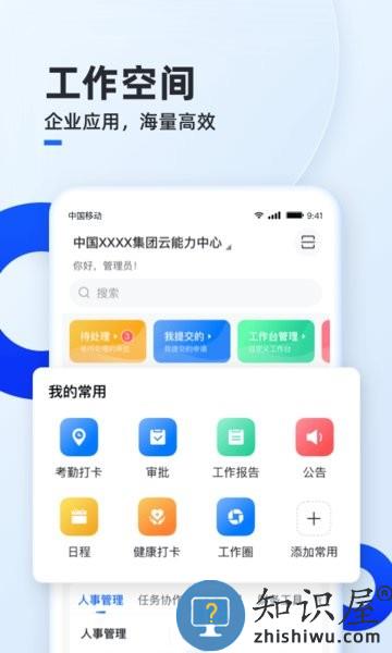 移动云云空间软件是中国移动为企业们准备的,其功能和钉钉差不多,能满足大家平时的工作需求你,上面还支持填写工作报告,更是可以进行健康打卡。