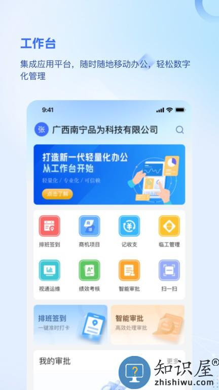 品为云app最新版是非常好用的企业移动办公软件,支持在手机上进行排班签到,能够查看项目的实时进度,可以在线查看详细的绩效考核,还能进行内部的沟通交流。