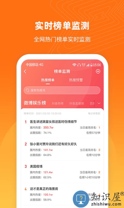 1.集合了热搜榜单,实时查看到超热门的榜单话题;