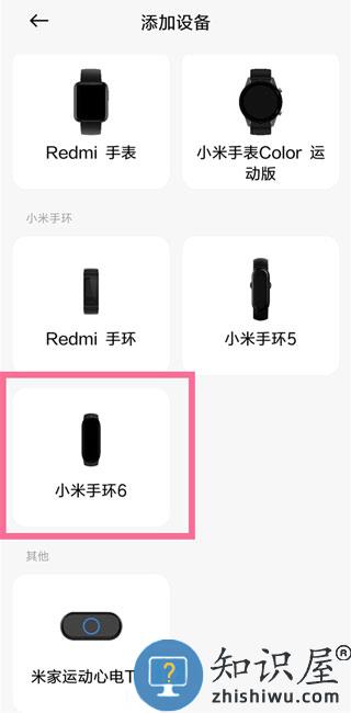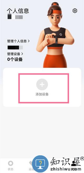 2、在“我的”界面点击【添加设备】,选择小米手环型号;