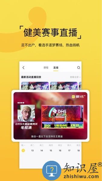 要炼app是您找课程、找场地、找教练的首选平台,为您提供精品的健身课程,官方免费课明星教练专研,多年龄段覆盖,还有专业的健美赛事直播!