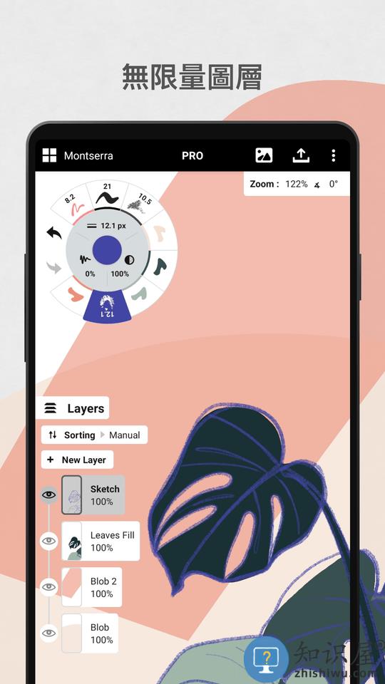 - 逼真响应压感、倾斜和速度的笔刷,并可选择实时平滑