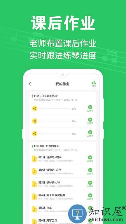 特别设计作业功能,让琴行老师更多的参与到课后练琴过程中来,实时掌握学生练琴情况,确保下次回课效率,提升教学质量