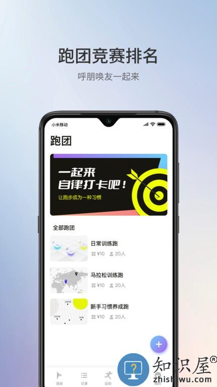 致力于打造熟人健身圈子,你可以创建专属跑团,邀请好友加入,和好友一起线上开跑,每日更新排名,健身的同时还满足社交需求。呼朋唤友大家一起来竞赛排名。想要的身材努力锻练,想要的生活自己争取。