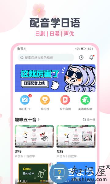 日语趣配音app安卓版提供给广大日语爱好者或者是正在学习日语的朋友们带来,上面具备五十音图,让你可以很好地学习,并且还可以每日打卡坚持,还有一些神剧让你去配音,也是可以起到锻炼的效果。