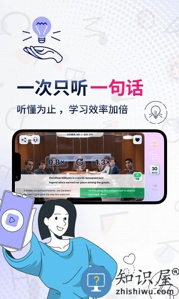设计初衷就是努力做到高效和趣味的完美平衡。通过提取大量美剧电影TED等地道素材的对话,配合视频的趣味场景,结合欧美母语者撰写的小测试题,让你轻松坚持精听,刷着视频就能掌握英语。