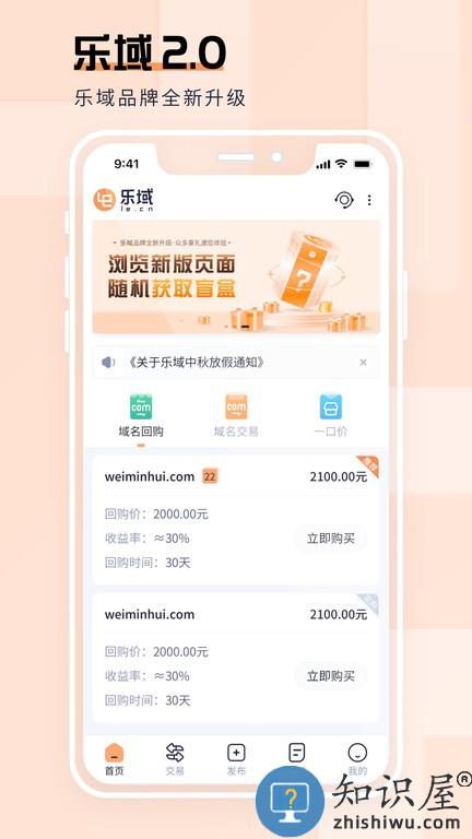 乐域域名交易平台为用户提供域名抢注、一口价、竞价等多种交易类型,为您提供安全、便捷的域名交易服务,您可在此平台上购买中意的域名。