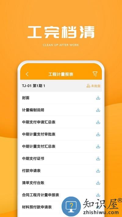 2、下载工程计量报表,查看该报表2265资料列表的时候能根据需要选择报表并下载;