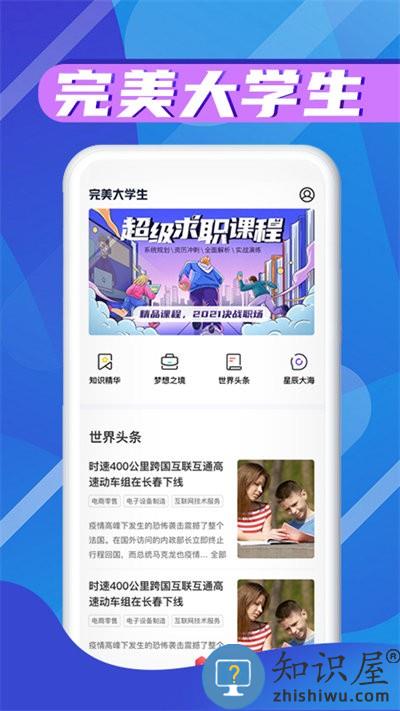 完美大学生app是一款专为大学生打造的软件,在这里有着最新的世界教育类头条新闻,还有大学生专属的求职课程进行提供,帮你体验从学业到职场的转变,还有许多的知识来进行学习,欢迎有需要的小伙伴前来下载体验!