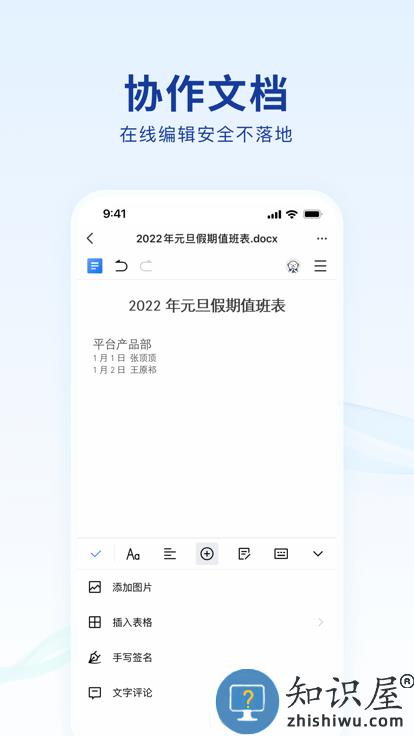 面向(超)大型组织提供基于组织通讯录的即时消息、名片库、工作群、文档、电话会议、视频会议、视频直播、电子签约、外部联系人、系统对接等功能和应用,致力于打造统一消息、统一通讯录、统一应用入口、统一待办、统一信息展示的移动工作统一入口门户引擎,打通组织边界,聚合组织内外的资源,革命性的降低组织成本和提升组织效率,满足大型政企组织对移动工作移动门户的需求。