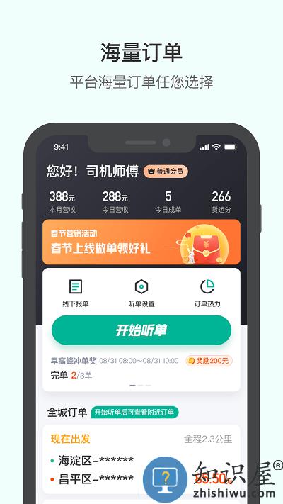 【海量订单】:来自滴滴的千万级用户,为您提供源源不断的订单,点击“开始听单”,接收来自周边的订单,接到手软吧!