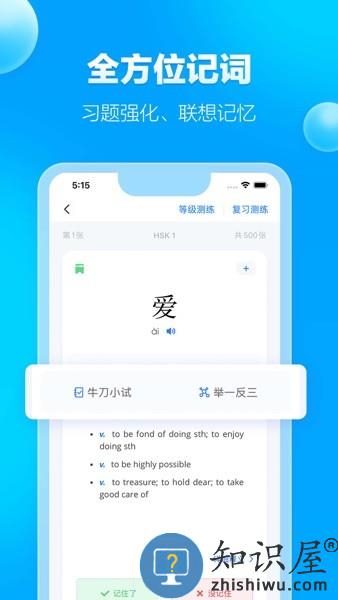 9.以HSK大纲词汇为核心,开发记忆词卡、联想词汇、试题练习功能;