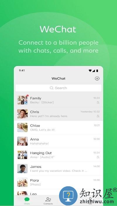 不止是优秀的通讯和社交,而且是全球超过10亿用户都离不开的生活方式。在WeChat,你不仅可以用文本、语音、视频、表情等多种方式与好友时刻保持联系;你还可以访问数百万个公众号和小程序,并从中获取海量的优质资讯和服务;你也可以与好友在WeChat游戏的世界里并肩作战,一同闯关;你更可以通过WeChat Pay 体验全球领先的移动支付所带来的生活便利。