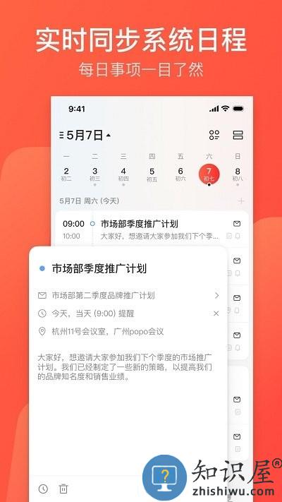 4、支持同步系统日历,支持日程视图,可按时间顺序查看所有工作安排