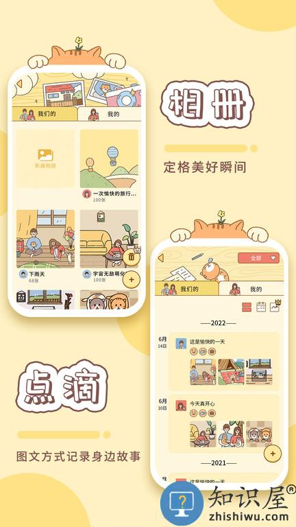 1.时光--包含相册、点滴、纪念日、愿望清单四大功能,每天使用四大功能将获得相应的爱心鼓励哦!