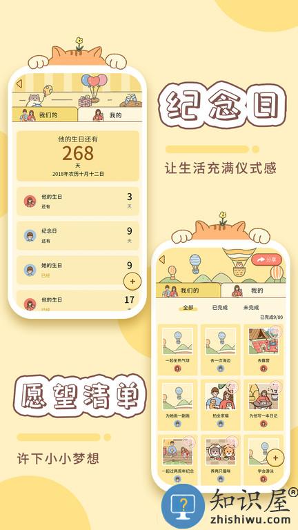 纪念日——小可爱们可记录下特别的日子,同时可以开启倒计时功能,提示下一次纪念日的到来还有多少天。